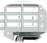 | El volado es la parte frontal de la carrocería que se coloca sobre la cabina. Dependiendo del vehículo este puede medir de 90 a 140 cm., o si lo desea, se puede extender hasta la defensa delantera colocando unos postes de soporte. | |